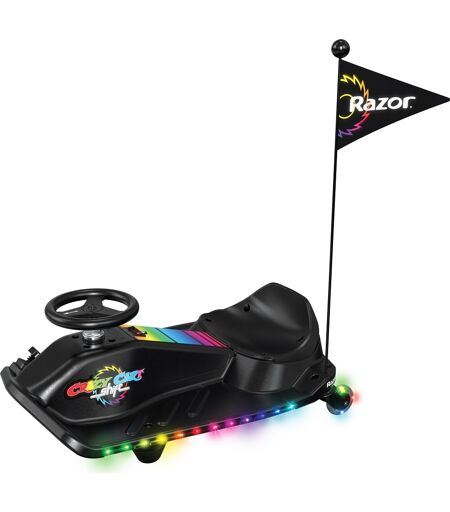 Elektrisk gokart, der ligger op til drifting Oplev sjov og spænding med Razor Crazy Cart Shift – den elektriske gokart, der er designet til yngre kørere og giver mulighed for at drifte, spinne og styre som aldrig før. Crazy Cart Shift er en kombination af sjov og sikkerhed, der tilbyder børn en fed, men kontrolleret køreoplevelse. Med et forenklet driftssystem kan børn holde begge hænder på rattet og nemt styre gokarten ved hjælp af speederen og modstyring. Dette gør det enkelt for unge kørere at mestre kunsten at drifte. Den avancerede Power Core™ hubmotor-teknologi eliminerer behovet for kæder eller remme og leverer en vedligeholdelsesfri og kraftfuld ydelse. Crazy Cart Shift tilbyder også variabel hastighed, med en maksimal hastighed på 13 km/t i "HIGH"-indstillingen. For forældre, der ønsker ekstra kontrol, kan tophastigheden begrænses til 4 km/t ved hjælp af en skjult hastighedskontakt, hvilket gør den ideel til yngre eller uerfarne kørere. Du får op til 40 minutters sjov ved høj hastighed og helt op til 80 minutter ved lav hastighed. Gokarten er bygget i en let og holdbar ramme af slagfast polymer, der gør den robust og let at håndtere. Specifikationer: Anbefalet alder: Fra 6 år i "LOW"-indstilling, fra 8 år i "HIGH"-indstilling Maksimal brugervægt: 54 kg Dimensioner: 77,1 cm (L) x 52,5 cm (B) x 32,5 cm (H) Produktvægt: 10,3 kg Hjul: 6" luftfrit forhjul og faste urethanhjul bagtil Batteri: 12V genopladeligt blysyrebatteri Køretid: Op til 40 minutter (HIGH), 80 minutter (LOW) Inkluderer: Batteri, batterioplader og flag ...