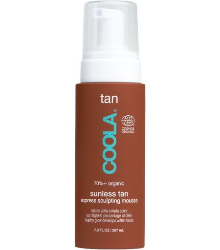 COOLA Sunless Tan Express Sculpting Mousse er en lækker mousse, som gradvist giver dig en lækker solbrun kulør. I løbet af nogle få timer, vil du opleve at huden får en mere gylden farve, og der vil ikke være nogen afsmitning eller striber på huden. Denne mousse er med mere end 70% økologisk certificerede ingredienser og mere end 99% naturlige ingredienser. Den er med koncentreret koffein, som giver huden en mere glat og fast overflade. Moussen indeholder et højt indhold af DHA, som er naturligt afledt af sukkerroer, og som er det stof, der giver en gylden kulør. Den lette mousse absorberes hurtigt, og så har den en virkelig lækker og frisk duft af Pina Colada, som leder tankerne hen på sandstrand og blå himmel. Få en lækker glød med COOLA Sunless Tan Express Sculpting Mousse. Fordele: Selvbruner mousse Giver en smuk solbrun kulør Udvikler sig over nogle timer Ingen afsmitning Over 70% økologisk certificerede ingredienser 99% naturlige ingredienser Absorberes hurtigt Duft af Pina Colada ECOCERT mærket Glutenfri Vegansk Anvendelse: Det anbefales at eksfoliere huden inden brug af selvbruner for mest optimale resultat Kom en generøs mængde selvbruner mousse i hånden eller på en påføringshandske Fordel moussen jævnt over hele kroppen Masseres ind med cirkulære bevægelser Lad den tørre inden du klæder dig på Lad den virker på huden 2-4 timer til den er fuldt udviklet Herefter kan den påføres igen hvis dette ønskes Vent 6-8 timer med at bade Ingrediensliste: Water (Aqua), Dihydroxyacetone, Hamamelis Virginiana (Witch Hazel) Water, Propanediol, Decyl Glucoside, Coco-Glucoside, Aloe Barbadensis Leaf Juice Powder, Caffeine, Centella Asiatica Meristem Cell Culture, Nephelium Longana Seed Extract, Coffea Arabica (Coffee) Seed Extract, Camellia Sinensis Leaf Extract, Quillaja Saponaria Extract, Chamomilla Recutita (Matricaria) Flower Extract, Heptyl Undecylenate, Caprylic/Capric Glycerides Polyglycerin-10 Esters, Glycerin, Lecithin, Citrus Aurantium Bergamia (Bergamot) Fruit Oil, Hydrolyzed Quinoa, Glyceryl Oleate, Alcohol Denat., Xylitol, Caprylic Acid, Alcohol, Xanthan Gum, Fragrance, Gluconolactone, Potassium Sorbate, Sodium Benzoate, Citric Acid. ...