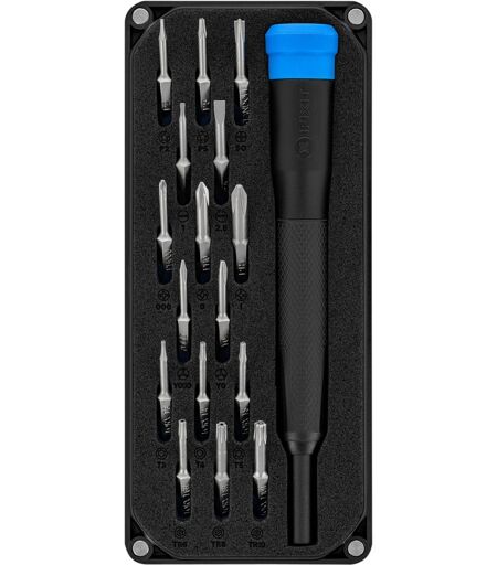 Minnow Precision Bit Set EU145474-1 fra iFixit tilbyder omfattende udstyr til alt skruearbejde, der kræver høj præcision. 16 bits er blevet omhyggeligt samlet. Sættet indeholder specielle bits til reparation af smartphones, spilkonsoller, bærbare computere, stationære computere, tablets og andre enheder inden for forbruger- og husholdningselektronik. Bitkassetten i lommestørrelse har en skumindsats med høj densitet, hvor bitene og værktøjerne er tydeligt arrangeret. 4 mm præcisionsbitholderen er udstyret med en integreret stift til udskubning af SIM-kort, en magnetisk bitholder, et knurled håndtag og roterende hætte. Låget på Minnow Precision Bit Set er fastgjort af magneter for at øge levetiden, ødelagte hængsler og lukninger hører nu fortiden til. Det kan også fastgøres på bagsiden af bitkassetten, så det ikke er i vejen på arbejdspladsen. Under reparationen fungerer låget også som en sorteringsbakke til skruer og individuelle dele. ...