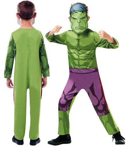 Rubies Marvel Avengers Hulken utklädningskläder för barn. Klä ut dig till Hulken med dessa maskeradkläder och lek att du är grön och stark! Dräkten består av en jumpsuit och mask. Masken är tillverkad i hård plast och sätts fast på huvudet med gummiband. Storlek: barn s, ca 3-4 år, 104 cm. Rekommenderas ej till barn under 3 år. ...