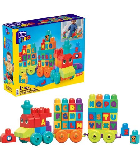 Alle ombord - lad os tage på store bogstaveventyr med ABC-læringstoget! Det bygbare tog med det venlige ansigt leveres med farverige byggeklodser, hvorpå bogstaverne er afbildet fra A til Z. Du skal blot forbinde de tre rullende hjulafstandsdele sammen og fastgøre bogstavbyggeklodserne for at sætte alfabetet eller endda hele ord sammen. Et fantastisk bygge- og læringslegetøj med klodser, der er nemme at få fat i for børn fra 12 måneder. ...