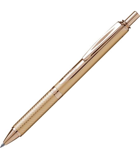 Pentel Energel Sterling – en elegant rollerball i høj kvalitet Pentel Energel Sterling rollerpennen er et formidabelt skriveredskab og et sikkert valg, for dig der stadig foretrækker at skrive i hånden. Med en Engergel Sterling i hånden, kan du nemlig være sikker på altid at opnå en god og behagelig skriveoplevelse. Energel Sterling har en elegant metalkrop og emmer af eksklusivitet og lang levetid. Det indlejrede mønster i metallet giver et godt greb og pennen har en god tyngde, så den ligger godt i hånden. Farve på pen: Gold Skriftfarve: Sort Stregbredde: 0,35 mm Kuglebredde: 0,7 mm Elegant og eksklusiv metalkrop Hurtigtørrende gelbaseret blæk Indlejret mønster for et godt greb Letflydende og hurtigtørrende gelblæk Energel indeholder et fantastisk letflydende gelbaseret blæk der tørrer lynhurtigt og glider let henover papiret, så du opnår en pæn og ensartet streg. Det pastalignende blæk skriver tilmed tre gange så langt og tørrer væsentligt hurtigere i forhold til en almindelig gelpen. Den lynhurtige tørring gør også pennen særdeles velegnet til venstrehåndede brugere, da blækket ikke klatter og tværes ud. Energel Sterling bliver leveret med en sort refill når du køber den, men du kan bruge Energel refiller i alle farver til den, så du kan vælge lige præcis den skriftfarve du bedst kan lide. Indlejret mønster for godt greb og høj skrivekomfort Energel Sterling pennen har samtidig en praktisk gribezone med et indlejret mønster i metallet, som sikrer et godt og fast greb med ekstra kontrol og komfort og samtidig har pennen en vist tyngde, som sikrer at pennen altid ligger godt i hånden, så du opnår en unik, behagelig og silkeblød skrivekomfort. ...
