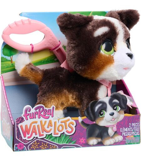 Det har aldrig været mere sødt at passe et kæledyr end med dette interaktive legetøj fra Just Play. Walk-A-Lots Bernedoodle fra serien furReal er en sort-hvid-brun, interaktiv hund, der altid er klar til en gåtur. Fastgør den medfølgende snor til hvalpens halsbånd, og tag den med på en gåtur rundt i huset med en blid skubbebevægelse. Han bevæger sig med en hoppende gang og et vippende hoved. Dette yndige, 20 centimeter høje børnelegetøj laver søde hvalpelyde, når det bevæger sig. Inkluderet: gøen, hyl og en munter "woof-woof"-sang. Efter gåturen kan børnene nusse, klappe og pleje deres hund. ...