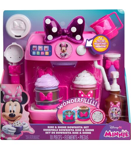 Masser af sjov med Disney Junior Minnie Mouse Rise & Shine Bowrista Sæt. Denne legetøjsespressomaskine med 10 dele fra Just Play er spækket med overraskelser, herunder realistiske lyde, lys, Minnie Mouse-ordsprog og 2 bowtastiske kaffekopper, som børn kan fylde til randen! Du skal blot indsætte portafilteret i maskinen og låse det på plads. Placer koppen på drypbakken, og tryk på den hvide knap. Mens Minnie Mouse råber "Det er så sjovt!", fylder Wonderfill-systemet koppen med "kaffe". Effekten ligner at lave espresso på en café! Pisk derefter lidt "mælk" op ved at placere en mælkekande under dysen. Tryk på hjerteknappen for at høre realistiske lydeffekter. Tilsæt legetøjssirup og en flødetopping for at fuldende drinken. Klar til en genopfyldning? Tøm kopperne på en af to måder: Placer koppen bag Minnies bue og tryk forsigtigt "kaffen" på bunden af koppen, eller indsæt tamper værktøj ind i ventilen i bunden af koppen for at tømme luften. Et fantastisk legesæt til små Disney-fans og spirende baristaer! ...