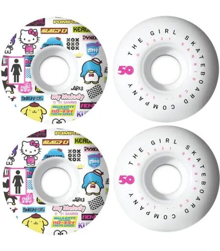 Girl Tokyo Speed 99A Skateboard Hjul 4-Pak (50mm - Hvid/Pink/Blå)