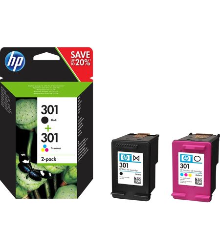 HP Originale 301-blækpatroner, sort/trefarvet, 2-pak