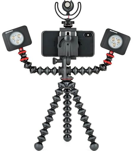 JOBY GorillaPod Rig Smartphone StativkitSpring over klodsede kameraer og skab i stedet avancerede videoer, vlogs og YouTube-indhold med din smartphone. GorillaPod Mobile Rig er fleksibel, bærbar og nem at bruge. Den holder ikke kun din smartphone i et sikkert greb, men også belysning og mikrofoner, så du kan koncentrere dig om det kreative. Specifikationer:Produkttype: StativFarve: SortMax. belastning: 1 kg ...