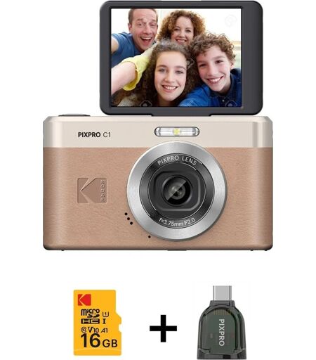 KODAK-kameraet leverer vintage-stil med moderne teknologi for at indfange minder. Træd ind i en verden af tidløse minder med Pixpro C1 digitalkameraet. Dette kamera kombinerer vintage-stil med moderne teknologi, hvilket gør det perfekt for trendsættere i alle aldre. Med en 13MP CMOS-sensor og et 26mm F2.0-objektiv med fast fokus er det nemt at tage fantastiske billeder. Den 2,8" 180° vipbare LCD-skærm giver mulighed for fleksible optagevinkler, mens 1080P Full HD-videokapaciteten sørger for videooptagelse i høj kvalitet. Kameraet er designet til at være praktisk og bærbart, og har et indbygget Li-ion-batteri, som gør det nemt at tage med på farten. Uanset om du indfanger øjeblikket eller genoplever stemningen, er dette kamera en perfekt ledsager for at fortælle din historie. 13MP CMOS-sensor 26mm F2.0 objektiv med fast fokus 2,8" 180° vipbar LCD-skærm 1080P Full HD-video Indbygget Li-ion-batteri ...