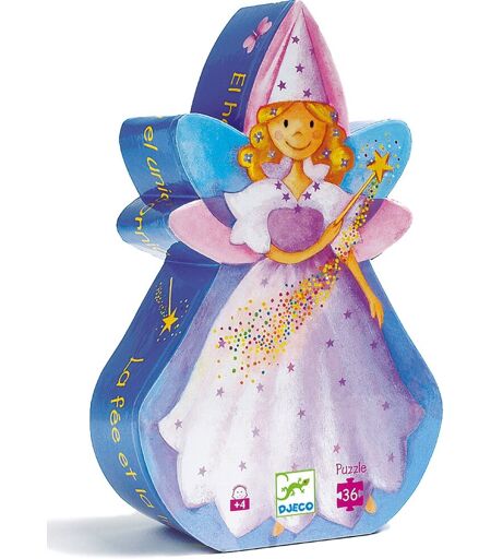 Pussel Fé och Enhörning Magisk pusselstund för små drömmare Låt fantasin ta form med detta förtrollande pussel från Djeco! Pusslet Fé och Enhörning bjuder in barnet till en sagolik värld där en vänlig fe och en enhörning sprider magi. Med 36 bitar är detta ett perfekt första pussel för barn från 4 år lagom utmanande och väldigt roligt. Den vackert formade kartongförpackningen föreställer fen själv och blir en fin detalj i barnrummet även när pusslet är klart. Innehåll: 36 pusselbitar Formad förvaringsask Specifikationer: Rekommenderad ålder: Från 4 år Material: FSC®-certifierad kartong och papper Storlek färdigt pussel: ca 30 x 42 cm En sagolik presentidé som förgyller både leken och inredningen! ...