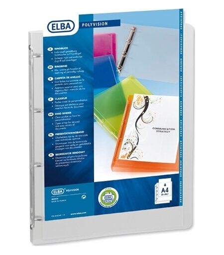 Elba indstiksringbind Smart og praktisk ringbind fremstillet i transparent farvet PP med klar lomme på forsiden. Du kan nemt og hurtigt tilpasse mappen med en personlig eller professionel forside. Ideel til projekter, opgaver, præsentationer m.m. Benyt www.elbaprint.com for personliggørelse. 4 O-ringe Indvendig kapacitet: 20 mm (ca. 190 ark) Rygbredde: 30 mm Format: A4 Leveres uden rygetiket Producentens varenummer: 138908 ...