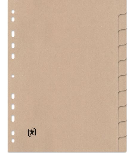 Oxford Touareg Faneblade Simple faneblade fremstillet i 64% genanvendt karton af høj kvalitet, hvor overfladen er holdt i naturlig træfarve. Fanebladene er modstandsdygtige og holdbare og er uden påtrykt print, hvilket giver dig mulighed for selv at skrive tal, bogstaver eller lignende og dermed personliggøre din arkivering og organisering i dit mappesystem på kontoret eller derhjemme. Opdeling: 10-delt Format: A4 Farve: Naturbrun Materiale: 64% genanvendt karton PEFC-certificeret karton Oxford Touareg-serien Touareg-serien fra Oxford er produkter fremstillet af genanvendt materiale og tilbyder et mere ansvarligt alternativ til den bevidste forbruger. Touareg kombinerer moderne trends og elegance uden at reducere produkternes robusthed. Kraftfarven med naturlige nuancer gør det nemt at indrette sig både professionelt og privat, og det vegetabilske blæk og det PEFC-certificerede karton sikrer en ansvarlig brug af verdens skove og en reduceret miljøpåvirkning. ...