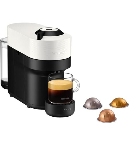 Nespresso Vertuo Pop kaffemaskine tilføjer et strejf af farve til dit liv. Vertuo Pop fås i seks levende farver, fra Spicy Red til Pacific Blue, og giver et dristigt statement. Med fire kaffekopstørrelser, fra espresso til stor kop, vælger du blot din Nespresso-kaffekapsel, sætter den indeni og lader dig forkæle med et tryk på en knap. For at folde de skjulte skatte ud fra aroma til crema læser kaffekapselmaskinen koden i hver Vertuo-kaffekapsel. Og for at reducere dens indvirkning på planeten er den lavet af 35% genanvendt plast. ...