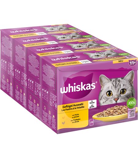 48x85g 11+ Fjerkræudvalg i gelé Whiskas Senior kattemad