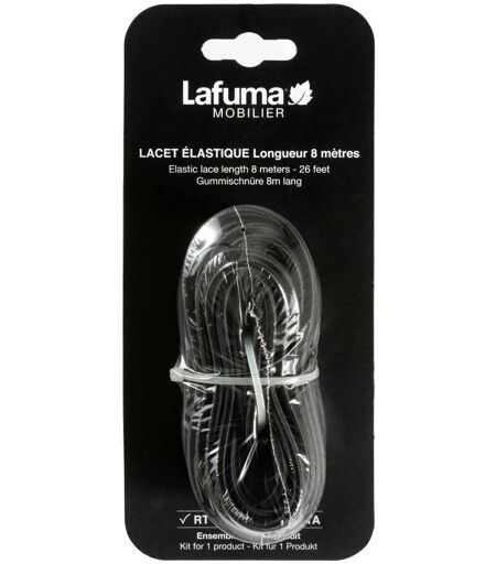 Lafuma Elastic Lace L: 8 m - Noir Med denne 8 meter lange elastiksnor kan du nemt udskifte den nuværende elastik i dine produkter, som bruger dette affjedringssystem. Elastikken er i en god og modstandsdygtig kvalitet, og er nem at bruge. Alt du skal gøre er at klippe og binde en knude, når du har sat elastikken på plads. Kan bruges sammen med alle Lafuma hvilestole og liggestole. Mål: 8 m Farve: Sort ...