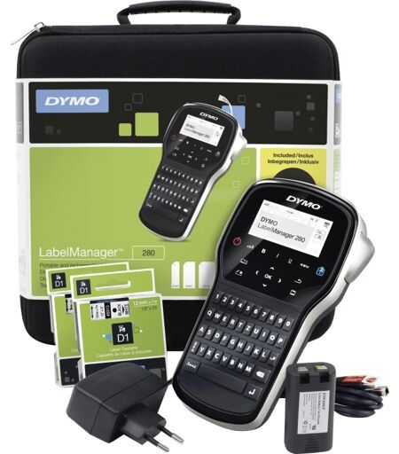 Dymo LabelManager 280 Labelmaskine i kuffertsætMed den håndholdte DYMO LabelManager 280 er det nemt at få styr på det hele. Tilslut den til en pc eller Mac og du kan oprette etiketter med alle de skrifttyper og den grafik, du har på din computer. Tekst indtastes praktisk nemt og hurtigt på det velkendte danske tastatur som til en computer. Derefter redigeres den hurtigt med genvejstaster til tekstformatering. Ingen udgifter og intet besvær med at bortskaffe engangsbatterier – med det genopladelige batterisæt skal du blot oplade, indtaste og udskrive. LabelManager 280 udskriver 50% hurtigere end øvrige DYMO etiketmaskiner. Og den udskriver etiketter på DYMO D1 tape i bredder på 6, 9 og 12 mm i varierende farver – perfekt til etiketmærkning af arkiver, reoler, udstyr mm. Denne pakke indeholder Dymo LabelManager 280, D1 tape 12mm - sort på hvid, D1 tape 9mm - sort på transparent, USB kabel, Li-Ion genopladeligt batteri, strømforsyning, soft case opbevaringskuffert samt lynstartsvejledning.Specifikationer: Opret etiketter med alle skrifttyper og grafik på din computer via tilslutning til pc eller Mac Kompatibel med Windows Vista, Windows 7, Windows 8, Windows XP, Mac OS X 10.5 eller nyere – kun IntelHurtig indtastning af tekst på velkendt dansk tastaturtype (QWERTY) som til computerGenopladeligt batterisæt – ingen udgifter og intet besvær med at bortskaffe engangsbatterierNem tekstredigering med genvejstaster til hurtig formateringTil oprettelse af mange forskellige typer af etiketter med DYMO D1 tape i bredder på 6, 9 og 12 mm i varierende farverStort display, hvor du kan se teksteffekterne, før du udskriver. Færdig med at gætte, hvordan etiketten kommer til at se ud. Den færdige etiket ser ud akkurat som på displayet!Udskriver etiketter med 6 skriftstørrelser, 7 stilarter, 8 rammetyper plus understregning, 220 symboler og clip art-billederGemmer og giver hurtig adgang til op til 9 hyppigt anvendte etiketterHurtig oprettelse af etiketserier – udskriver op til 10 stk. af den samme etiketLet at betjene fra start til udskriftLængere batteristrømtid med automatisk slukningGenvejstaster til tegnsætning, valutasymboler, øvrige symboler, accenttegnAnvender DYMO Label softwareversion 8 Kompatibel med Windows Vista, Windows 7, Windows 8, Windows XP, Mac OS X 10.5 eller nyere – kun IntelPerfekt til etiketmærkning af reoler, arkivmapper, kontorartikler mm.Perfekt til etiketmærkning af reoler, arkivmapper, kontorartikler mmMål (HxBxD): 26,5 x 2,9 x 27,5 cm Vægt: 1,2 Kg Pakkens indehold: Dymo LabelManager 280, D1 tape 12mm - sort på hvid, D1 tape 9mm - sort på transparent, USB kabel, Li-Ion genopladeligt batteri, strømforsyning, soft case opbevaringskuffert samt lynstartsvejledning. ...