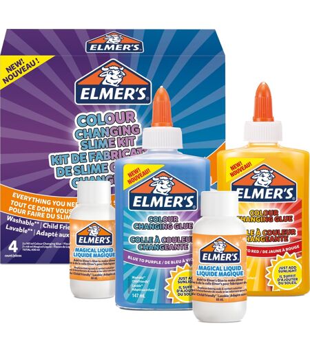 Elmer’s Colour Change Slimsæt Dette kreative DIY slimsæt indeholder 2 farveændrende hobbylim som går henholdsvis fra blå til lille og fra gul til rød, plus 2 klassiske slimaktivatorer, så du frit kan slippe kreativiteten løs og mikse og matche den perfekte slim med spændene og sjov farveændringseffekt. Med sættet kan du lave uanede mængder af fantasifulde slimkreationer og er sikret timevis af kreativ leg og læring. All-in-one formel til hjemmelavet slim Vaskbar for hurtig og nem rengøring Ingen giftige stoffer Fantastiske farveændringseffekter Timevis af kreativ udfoldelse Hobbylim + magical liquid = hjemmelavet slim Med Elmer's lim og magical liquids er der ingen grænser for dine ideer til slim kreationer. Elmer’s hobbylim er børnevenlig, vaskbar og forbliver fleksibel, når den er tør - til hurtig og nem rengøring. Og takket være Magical Liquid behøver du ikke tilføje kontaktlinsevæske, bagepulver eller andre tilsætningsstoffer. På denne måde kan limen hurtigt og let omdannes til den perfekte slim. Legeslim med sjov farveændringseffekt Colour Change slimen skifter farve når den udsættes for sollys, hvilket skaber en levende, effektfuld of farveskiftende slim som er sjov at lege og eksperimentere med. Lav en slim der går fra at være blå til at blive lilla når solen skinner og tilbage til blå igen når det kraftige lys forsvinder. Ligeledes kan du lave en slim der går fra gul til rød og tilbage igen alt efter om slimen udsættes for kraftigt lys eller ej. Kombiner limen med de medfølgende magical liquids, for ubegrænset kreativitet og masser af sjov - kun fantasien sætter grænser! Elmer’s Colour Change Slimsæt indeholder: 1 x Elmer's Colour Changing Glue (blå til lilla) 1 x Elmer's Colour Changing Glue (gul til rød) 2 x Magical Liquid OBS! Ikke egnet til børn under 3 år Brug kun under opsyn af voksne. Vask hænder grundigt før og efter fremstilling såvel som før og efter leg med slim. ...