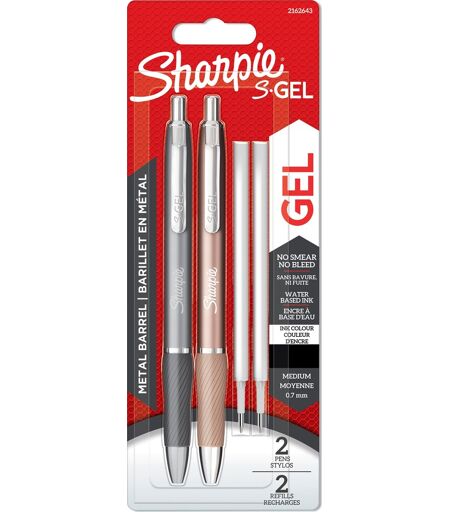 Sharpie S-Gel Rollerpen – en business gelpen i topklasse Rollerpennen fra Sharpie er en gelpen i yderst høj kvalitet, som er særligt velegnet til professionelt brug. Pennen indeholder et letflydende og farveintenst gelblæk, som tørrer på mindre end 2 sekunder, så du undgår at tvære blækket ud når pennen bruges, hvilket gør pennen god til venstrehåndsbrug. Pennen har også et behageligt og tekstureret gummigreb, så pennen altid ligger godt i hånden og ikke glider mellem fingrene. Sæt med to gelpenne og 2 refiller Blækfarve: Sort Kuglebredde: 0,7 mm Hurtigttørrende gelblæk Intens og levende farveintensitet Tekstureret gummigreb Slankt og moderne design S-Gel pennen har et slankt og moderne design, med en flot mat finish, som giver pennen et professionelt look. Dertil har pennen en stilfuld trykknap i chrome, samt en elegant chromering i midten af pennen, som indikerer hvilken farve pennen skriver med. Pennen har også en praktisk clips så pennen let kan sættes i notesbogen, kalenderen eller skjortelommen når du er på farten eller til møder. Sharpie - skriveartikler med høj ydeevne Sharpie tilbyder et bredt udvalg af tuschpenne, kuglepenne, highlightere og andre skriveartikler, som kan bruges både på kontoret, i klasseværelset og derhjemme. Sharpie skriveartikler har en høj ydeevne og er samtidig designet til en høj grad af præcision og tilbydes i mange forskellige formater – så uanset om du mangler en kreativ farvetus til dit næste kunstprojekt eller en professionel permanent marker på din arbejdsplads, så er Sharpie altid et sikkert, godt og pålideligt valg. ...