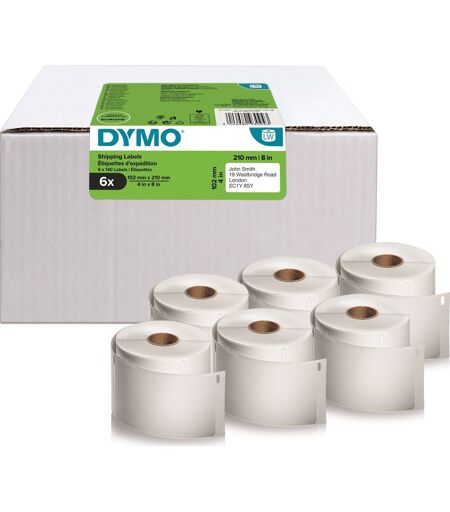 Dymo LabelWriter DHL forsendelseslabels, 102x210 mmOpret hurtigt forsendelsesetiketter direkte fra din DYMO LabelWriter-labelprinter med DYMO LW-forsendelsesetiketter. Ved at bruge en direkte termisk printproces slipper du for besværet med dyrt blæk eller toner. Pakket i ruller kan du nemt udskrive én termisk forsendelsesetiket eller hundredvis – ikke flere rodede ark, affald eller papirstop. Pakken indeholder 6 ruller hvide DYMO LW-forsendelseslabels med 140 individuelle labels pr. rulle. Etikettens størrelse er 102mm x 210mm. – Passer perfekt til PostNord, DB Schenker, Bring og DHL fragtlabelstørrelse.EgenskaberType: ForsendelsesetiketterFarve: Sort tekst på hvide labelsHøjde: 102 mmBredde: 210 mmAntal: 6 ruller Passer til: Dymo 5XL ...