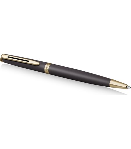 Waterman Hémisphère Lava Black I mere end 100 år har Waterman produceret skriveartikler i særklasse. På Exposition Universelle i Paris i 1900 vandt Waterman den største hædersbevisning ”gold medal of excellence”. Pennene produceres i Frankrig og har siden starten været designet med Paris som udgangspunkt. Byens enorme, kulturelle rigdom og litterære historie er den primære inspiration i Watermans funktionalitet og design – med den parisiske tidløshed i højsædet. Hémisphère-serien er den mest slanke og feminine pen blandt Watermans mange flotte modeller. Alle pennene i serien har et destinkt og præcist design, pakket ind i eksklusive designs i mange flotte farver og udtryk. Denne Hémisphère model er den af serien Understated Edit penne fra Waterman. Pennene er inspireret af en underspillet følelse af ”quiet luxury”. Pennekroppen er lavasort og slim i udtrykket og detaljerne er dobbeltbelagt med guld. Model: Waterman Hémisphère Lava Black Type: Kuglepen Leveres med 1 stk. Waterman Maxima medium blå kuglepen refill Leveres i flot gaveæske ...