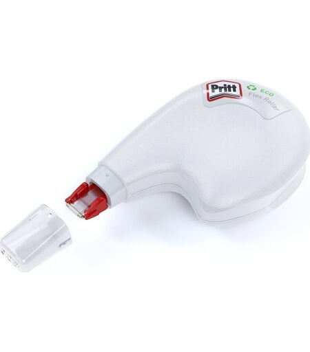 Pritt Eco Flex korrekturroller med god dækkeevne Korrekturroller fremstillet af 100% genanvendt plastik. Den førsteklasses rettetape kommer i en ergonomisk holder som giver et godt greb, og påføringen sker sidelæns. Rettetapen er nem og behagelig at holde på, og den giver en problemfri påføring som sikrer dig et rent og pænt resultat. Derfor er det ikke noget problem at have skrevet forkert, når bare du har Pritt korrekturrolleren ved hånden! Korrektionsrolleren er perfekt til øjeblikkelig overskrivning. Den supertynde hvide korrektionstape påføres tørt, let og elegant på papiret. Du kan omgående skrive på tapen med tusch, blæk og kuglepen. Korrekturrolleren har et fleksibelt design, som gør tovejs-korrektion mulig. Træk for at dække en hel sætning, tryk for ét bogstav. Tapebredde: 4,2 mm Længde: 10 meter Beholderen er fremstillet af 100% genanvendt plastik ...