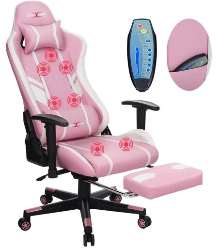 GC-RC03 Gaming Stol Massage Ergonomisk høj ryg Design Lændeafslapning Ny tilpasset PU Massage Computer Kontorstole, Farve: Pink + Hvid