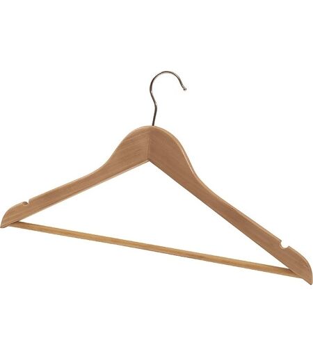 Flotte og praktiske bøjler med buet design og tværbøjle Disse praktiske træbøjler er designet med en buet form, tværbøjle til bukser samt hakker til beklædning med stropper mv.Bøjlerne er fremstillet af træ og med en krog i stål. De er designet til at være skånsomme for tøjet. Farve: Natur Mål (LxBxD): 44,5 x 23 x 2,5 cm Materiale: Træ og stål Antal: Pakke med 25 stk. Tværbøjle til bukser Hakker til ophængning af beklædning med stropper ...