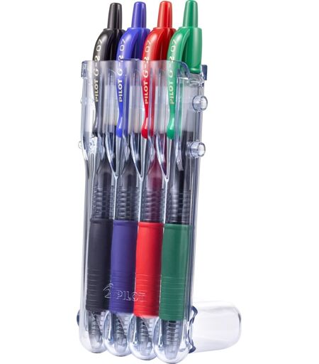 Pilot G-2 rollerpen med medium spids Pilot G-2 rollerpen er en yderst populær gelpen fremstillet med en unik gel-formel som sikrer at blækket først bliver flydende ved kontakt med papir eller en anden skriveoverflade. Blækket har en letflydende gelkonsistens som glider meget let henover papiret, så du oplever en silkeblød fornemmelse og en høj skrivekomfort når pennen bruges. Rollerpennen kombinerer teknologisk ydeevne og funktionelt design og er fremstillet med et ergonomisk gummigreb som giver et godt og fast greb, så pennen er nem at holde om. Det ergonomiske greb giver samtidig pennen en god stabilitet og sikrer at pennen ligger godt og ergonomisk korrekt i hånden, så du undgår at blive øm og træt i hånden når du skriver. Pilot G-2 rollerpen har en meget modstandsdygtig wolframcarbidkugle, som bevarer sin form og er ekstremt slidstærk, hvilket modvirker at pennen klatter mens du skriver. Dertil har blækket en imponerende fyldighed og en utrolig farveintensitet, som tilmed er lysægte. Samtidig har kuglepennen en smart klips så du kan have den siddende b.la. i lommen, på studieblokken eller på omslaget af notesbogen, så den altid er indenfor rækkevidde når du skal bruge den. Pennene er produceret i 70 % genanvendt plast og er samlet i en praktisk boks fremstillet i 100% genanvendt plast. Låget på boksen kan nemt klikkes på forneden, så du kan have sættet stående oprejst. Dertil kan låget slides op og ned langs siden så du kan justere højden og vinklen på den smarte standup boks. Dertil kan sættes nemt klikkes sammen med andre sæt fra Pilot, ved hjælp af de små klikmekanismer på siden af boksen. Farve: Sort, blå, rød, grøn Kuglespids: 0,7 mm Stregbredde: 0,32 mm Ergonomisk gummigreb Gelblæk med høj farveintensitet Rollerpenne produceret af 70 % genanvendt plast Boks af 100% genanvendt plast Producentens varenr.: BL-G2-7 ...