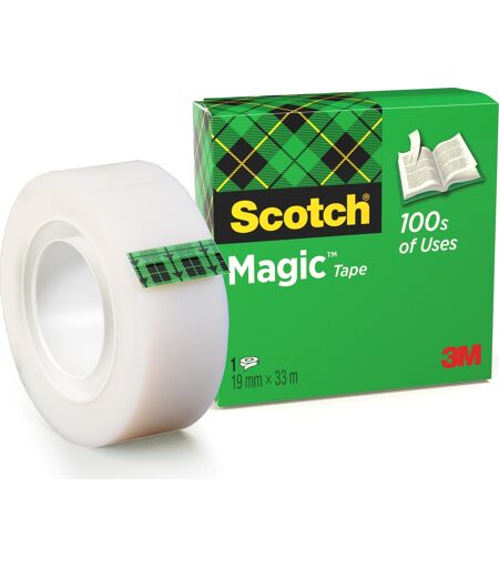 Scotch Magic Tape 810 - klisterbånd med mange fordele En god allround kontortape. Scotch Magic tape er usynlig på de fleste papirtyper. Perfekt til reparation og forsegling af dokumenter og usynlig ved scanning eller fotokopiering. Tapen er matteret på rullen, men usynlig, når den anvendes. Rullerne kan anvendes i mange forskellige tapedispensere med en kerne på 2,54 cm eller helt uden dispenser.Det permanente klæbemiddel giver holdbar en klæbeevne uden at efterlade spor. Tapen gulner ikke over tid og ødelægger ikke fotos, trækkes let af rullen og er nem at rive over.Tapen kan skrives på med kuglepen, blyant eller tuschpen og kaldes også englehud på grund af sin gennemsigtige og fine kvalitet.Dette er den uundværlige tape til arbejdspladsen og hjemmet. Ideel til opsætning af meddelelser, samling af sider, gaveindpakning og meget mere. Farve: KlarVelegnet til at skrive på Usynlig på fotokopier og scanningerKerne: 2,54 cm Bredde: 19 mm Mængde på rullen: 33 m ...