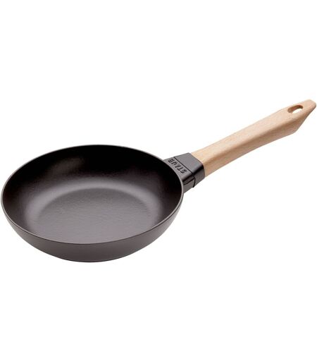 Staub Pander Stegepande Med træhåndtag 20 cm, Støbejern, Sort