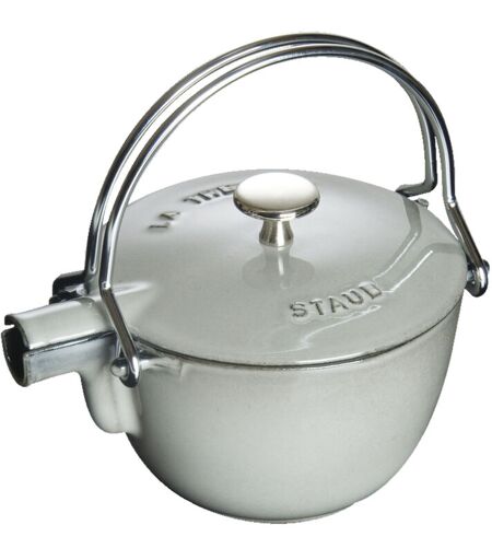 Denne lille, runde potte i grafitgrå er både en tepotte og en vandkedel. Den har en platform til teægget og et rustfrit stålhåndtag, som lukker låget under hældning. Potten er perfekt til te, men kan også bruges til at opvarme vand. Den kan desuden anvendes på enhver komfurtype, inklusiv induktion. Denne kande har en diameter på 16,5 cm, en højde på 18 cm og en volumen på 1,15 liter. Den er lavet af støbejern med sort emalje indvendigt. Den er perfekt til te, da støbejern holder fremragende på varme og derved holder teen varm i lang tid. Emaljeret støbejern er desuden meget slidstærkt, utrolig robust og nemt at rengøre. Denne tepotte fra Staub vil være et stilfuldt element til en hyggelig eftermiddagste, takket være dens design og farve, og vil fuldende dit køkkentøj. Udforsk nye tevarianter og hæld dem op med stil med den grafitgrå tepotte fra Staub. Egnet til at koge vand og trække te. Te forbliver varmt længe. Teægget hænges fast under knoppen. Egnet til alle komfurtyper, inklusiv induktion. Kan også bruges til servering af suppe ...