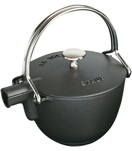 Den sorte tepotte fra Staub er lavet af støbejern, som holder på varmen i meget lang tid og derved er velegnet til en hyggelig kop te med venner. Tepotten er både udstyret med et låg og en praktisk indretning til at hænge teægget fra. Når du griber om det rustfri stålhåndtag forbliver pottens låg sikkert på plads, hvilket gør den yderst brugervenlig. Den runde tepotte har en diameter på 16,5 cm, en højde på 18 cm og kan indeholde op til 1,15 liter. Tepotten er udstyret med en sort, mat emalje på den indvendige side, hvilket gør den meget slidstærk og nem at rengøre. Du kan varme vand til te på enhver type komfur, inklusiv induktion. Du kan bruge denne æstetisk tiltalende tepotte med elegante håndtag lavet af rustfrit stål til andet end blot at lave te. Den er nemlig også egnet til at opvarme vand til andre formål, da støbejernet hurtigt overfører varme og fordeler den optimalt over hele overfladen. Denne tepotte fra Staub kan bruges til at lave en lækker kop te, men også til at lave en suppe og servere den i kanden, som det for eksempel gøres i mange asiatiske lande. Egnet til at koge vand og trække te. Te forbliver varmt længe. Den matte, sorte indvendige emalje er ideel til svitsning , da den ikke misfarves og er særdeles holdbar. Egnet til alle komfurtyper, inklusiv induktion. Kan også bruges til servering af suppe ...
