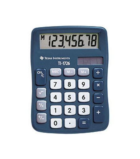 Texas Instruments TI-1726 Miniskrivebordslommeregneren med attraktiv udformning og SuperView-display. Specifikationer: Stort, 8-cifret (12,5 mm) LCD SuperView-display. Rummeligt tastatur med velplacerede gummiknapper. Knap til (+/-) Knap til kvadratrod Vinklet display gør det nemmere at aflæse. ANYLITE™ solcelledrift. Kan anvendes selv i dårligt lys. str. 80 x 110 mm ...