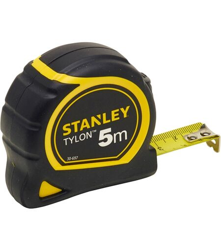 Stanleys 5 meter lange Tylon tape dimension (nøjagtighed klasse II) er en ekstra tyk 19 mm bred strimmel, buet og helt belagt med Tylon polymer beskyttende lag. Endekrogen er nittet to gange, bevægelig til intern og ekstern måling. Det robuste plasthus er slagfast, gummieret og giver maksimal brugervenlighed og maksimal holdbarhed. Tylon målebåndet har også en låsemekanisme, automatisk retur og en bælteclips. ...