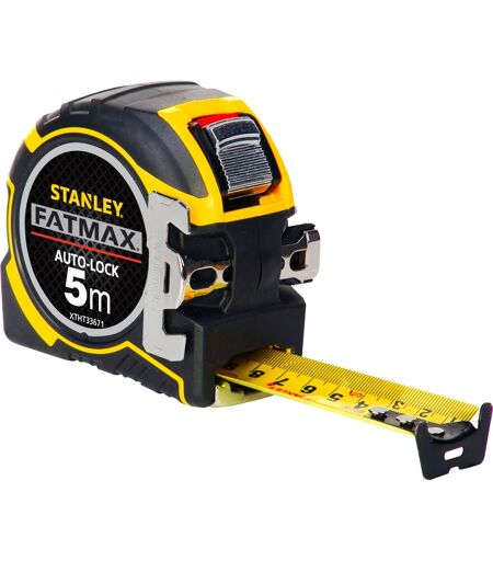 Den 5 meter lange premium tape størrelse FatMax PRO Autolock fra STANLEY er et ekstra stærkt 32 mm bredt bånd, buet og helt dækket med Mylar beskyttende lag. Bæltet kan forlænges vandret op til 3,3 meter uden bøjning. Båndpanserdækslet på de første 80 mm fordobler holdbarheden i krogområdet. Den store krog er tredobbelt nittet, bevægelig til intern og ekstern måling. De magnetiske og XL-kroge er udskiftelige, hvilket i høj grad udvider anvendelsesmulighederne. Den integrerede krogholder sikrer, at ekstra kroge ikke går tabt, når de ikke er i brug. Det robuste hus lavet af bi-materiale er let at gribe fat i. FatMax PRO Autolock målebånd har også en låsemekanisme, en patenteret retur- og låsemekanisme og en bælteclips. ...