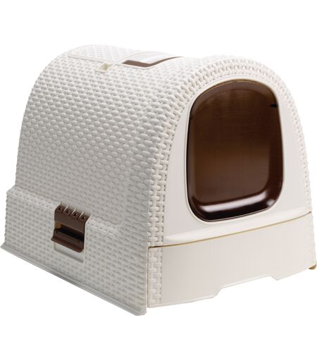 Få en ægte perle med hjem med Eco-Friendly Kattetoilet Curver. Toilettet overbeviser med sit klassiske rattan- look og det praktiske skuffesystem. For en hurtig udskiftning af kattegruset kan skuffen nemt trækkes ud af toilettet. Alternativt kan du også fjerne hele huset og løfte den med bærehåndtaget. Særligt praktisk er den medfølgende skovl, som er placeret i et integreret opbevaringsrum i kattebakkens låg. Det miljøvenlige toilet er lavet af 95% genbrugsmaterialer og er endda 100% genanvendeligt, når det bortskaffes. Toilettet er udstyret med et aktivt kulfilter. Dette sikrer, at der ikke kommer nogen ubehagelige lugt fra toilettet. Det medfølgende potegitter kan placeres foran eller på toilettet. Du kan placere det direkte foran kattebakken eller på skuffen, så den befinder i kattetoilettet. På den måde forbliver gruset i kattebakken og fordeles ikke i hjemmet. Gitteret spreder let din kats poter, når den træder på det, og overskydende grus falder af. Eco-Friendly Kattetoilet Curvers lukkede form med tonet svingdør beskytter din kats privatliv. Men døren er også aftagelig og kattebakken kan således tilpasses din kats individuelle behov. En stor fordel ved Eco-Friendly Kattetoilet Curver er, at det kan skilles helt ad og er derfor let at rengøre. Eco-Friendly Kattetoilet Curver i overblik: Eco-friendly kattetoilet med hus og grusskuffe Med aktivt kulfilter: forhindrer at ubehagelige lugte spreder sig Praktisk skuffesystem: nemt skift af grus Hus kan aftages fuldstændigt: gør det endnu nemmere at rengøre eller skifte grus Med potegitter: så der ikke spredes grus i hjemmet Aftagelig dør: kan bruges med eller uden, alt efter hvad din kat bedst kan lide Skovl medfølger: indbygget rum i låg Kan skilles ad: nemt at rengøre Lækkert design i rattan-look Farve: antracit, mokka, hvid, misty blue (blå) Materiale: 95% genanvendt plast Mål: Samlet: L 51 x B 38,5 x H 39,5 cm Indgang: B 20,5 x H 23 cm Indgangshøjde: 13 cm ...