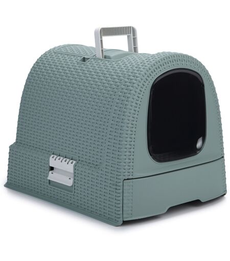 Få en ægte perle med hjem med Eco-Friendly Kattetoilet Curver. Toilettet overbeviser med sit klassiske rattan- look og det praktiske skuffesystem. For en hurtig udskiftning af kattegruset kan skuffen nemt trækkes ud af toilettet. Alternativt kan du også fjerne hele huset og løfte den med bærehåndtaget. Særligt praktisk er den medfølgende skovl, som er placeret i et integreret opbevaringsrum i kattebakkens låg. Det miljøvenlige toilet er lavet af 95% genbrugsmaterialer og er endda 100% genanvendeligt, når det bortskaffes. Toilettet er udstyret med et aktivt kulfilter. Dette sikrer, at der ikke kommer nogen ubehagelige lugt fra toilettet. Det medfølgende potegitter kan placeres foran eller på toilettet. Du kan placere det direkte foran kattebakken eller på skuffen, så den befinder i kattetoilettet. På den måde forbliver gruset i kattebakken og fordeles ikke i hjemmet. Gitteret spreder let din kats poter, når den træder på det, og overskydende grus falder af. Eco-Friendly Kattetoilet Curvers lukkede form med tonet svingdør beskytter din kats privatliv. Men døren er også aftagelig og kattebakken kan således tilpasses din kats individuelle behov. En stor fordel ved Eco-Friendly Kattetoilet Curver er, at det kan skilles helt ad og er derfor let at rengøre. Eco-Friendly Kattetoilet Curver i overblik: Eco-friendly kattetoilet med hus og grusskuffe Med aktivt kulfilter: forhindrer at ubehagelige lugte spreder sig Praktisk skuffesystem: nemt skift af grus Hus kan aftages fuldstændigt: gør det endnu nemmere at rengøre eller skifte grus Med potegitter: så der ikke spredes grus i hjemmet Aftagelig dør: kan bruges med eller uden, alt efter hvad din kat bedst kan lide Skovl medfølger: indbygget rum i låg Kan skilles ad: nemt at rengøre Lækkert design i rattan-look Farve: antracit, mokka, hvid, misty blue (blå) Materiale: 95% genanvendt plast Mål: Samlet: L 51 x B 38,5 x H 39,5 cm Indgang: B 20,5 x H 23 cm Indgangshøjde: 13 cm ...