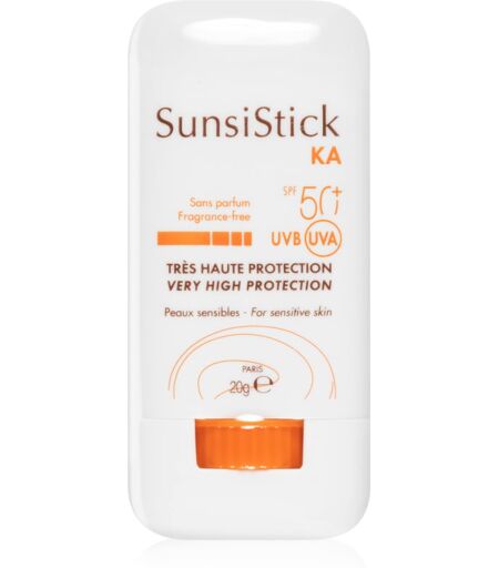 Avène Sun SunsiStick KA, 20 g, Beskyttelse mod sollys til kvinder , Præparatet Avène Sun giver dit ansigt en sikker beskyttelse mod solens stråler. Egenskaber: beskytter huden mod UVA og UVB stråler kan bruges i ansigtet og på kroppen produkt er vandafvisende nem og hurtig påføring velegnet til sensitiv hud Ingredienser: uden parfume Brugsvejledning: Påfør præparatet ca. 20 minutter før huden får sol. Gentag efter behov, især efter badning, aftørring med håndklæde, eller hvis du sveder meget. ...