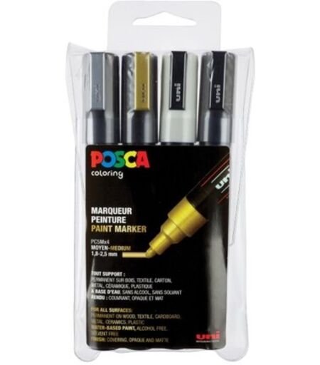 Posca Marker Set 4-p Svart Vitt Guld Silver PC-5M Spets 1,8-2,5 mm