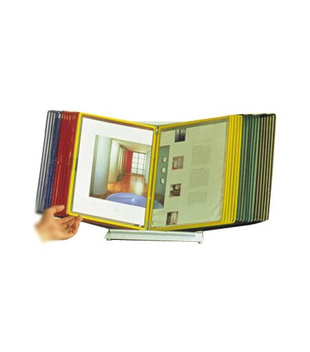 Når de vigtige informationer skal være lige ved hånden Dette bordmodul er designet så det passer til alle slags arbejdspladser: Kundeservice, omstillingsborde, økonomi/administration osv. Du har altid de vigtigste oplysninger lige foran dig, i bordstanderens transparente lommer. Husk lommer - Varenummer 541100, denne model bruger 20 stk. ...