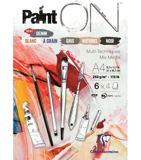 Clairefontaine PaintON Tegneblok – multiteknikblok i høj og anerkendt kvalitetClairefontaine er en stor og anderkendt papirproducent som producerer alt indenfor papirvarer til både professionelle og private og som i mere end 150 år har været garant for papirprodukter af yderst høj kvalitet. Du kan derfor være helt sikker på at Clairefontaine altid tilbyder den bedste kvalitet på markedet, da de er certificeret med ISO 9001, som er en tydelig blåstempling af deres exceptionelle høje kvalitetstandard.Med denne Clairefontaine PaintON tegneblok ved hånden, får du en god multiteknikblok med kvalitetspapir i 6 forskellige farver: ekstra hvid, hvid, sort, denimblåt, gråt og naturbrun. I blokken finder du både papir med en glat overflade, som er velegnet til præcis tegning, maling og farvelægning, samt papir med en let struktureret overflade, som byder på et vælg af flotte muligheder med varierende tegneteknikker hvor den lettere ru overflade giver god mulighed for at bruge forskellige værktøjer og stilarter, for at opnå en smuk dybde og variation i dine kreationer. Alt papiret er desuden syrefrit og har en god og kraftig papirkvalitet, med en yderst god absorberingsevne, som gør at blokken kan bruges til et utal af forskellige tegne- og maleteknikker og dermed giver dig de bedste muligheder for kreativ udfoldelse.Det kraftige papir er det perfekte multi-teknik papir, som giver dig rig mulighed for at arbejde indenfor både tørre tegneteknikker med b.la. blyanter, farveblyanter, pasteller, kul og tusser og mere våde maleteknikker med b.la. gouache, akvareller og akrylfarve. Multi-teknik papirer gør derfor tegneblokken meget alsidig og velegnet til dig, som ønsker at udforske din kreativitet, men som ikke ønsker at lade sig begrænse til en enkelt kreativ tegneteknik. Med multiblokken ved hånden kan du altså nemt lade dig inspirere til at tegne og male verden omkring dig, uanset om du befinder dig i byens hektiske gader eller på landet med naturskønne scener og plads til abstrakte tanker og følelser. Papirfarve: Ekstra hvid, hvid, sort, denimblå, grå og naturbrunFormat: A4Antal ark: 24 (4 ark af hver farve)Papirkvalitet: 250 gMål (BxL): 21 x 29,7 cmToplimningPEFC-certificeret papir ...