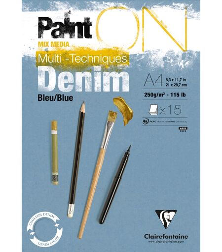Clairefontaine PaintON Tegneblok – multiteknikblok i høj og anerkendt kvalitetClairefontaine er en stor og anderkendt papirproducent som producerer alt indenfor papirvarer til både professionelle og private og som i mere end 150 år har været garant for papirprodukter af yderst høj kvalitet. Du kan derfor være helt sikker på at Clairefontaine altid tilbyder den bedste kvalitet på markedet, da de er certificeret med ISO 9001, som er en tydelig blåstempling af deres exceptionelle høje kvalitetstandard.Med denne Clairefontaine PaintON tegneblok ved hånden, får du en god multiteknikblok med let struktureret kvalitetspapir i en fin denimblå farve. Det blå papir byder på et vælg af flotte muligheder med varierende tegneteknikker og den lettere ru overflade giver god mulighed for at bruge forskellige værktøjer og stilarter, for at opnå en smuk dybde og variation i dine kreationer. Det denimblå papir er desuden syrefrit og har en god og kraftig papirkvalitet, med en yderst god absorberingsevne, som gør at blokken kan bruges til et utal af forskellige tegne- og maleteknikker og dermed giver dig de bedste muligheder for kreativ udfoldelse.Det kraftige papir er det perfekte multi-teknik papir, som giver dig rig mulighed for at arbejde indenfor både tørre tegneteknikker med b.la. blyanter, farveblyanter, pasteller, kul og tusser og mere våde maleteknikker med b.la. gouache, akvareller og akrylfarve. Multi-teknik papirer gør derfor tegneblokken meget alsidig og velegnet til dig, som ønsker at udforske din kreativitet, men som ikke ønsker at lade sig begrænse til en enkelt kreativ tegneteknik. Med multiblokken ved hånden kan du altså nemt lade dig inspirere til at tegne og male verden omkring dig, uanset om du befinder dig i byens hektiske gader eller på landet med naturskønne scener og plads til abstrakte tanker og følelser. Papirfarve: DenimblåFormat: A4Antal ark: 15Papirkvalitet: 250 gMål (BxL): 21 x 29,7 cmToplimningPEFC-certificeret papir ...