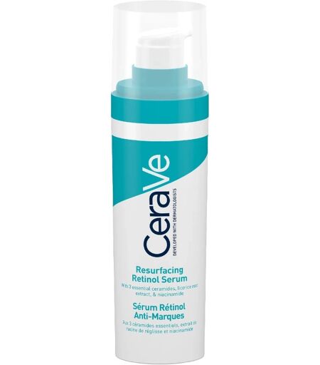 CeraVe Resurfacing Retinol Serum er et serum, som reducerer udseendet af porer og mærker efter akne hos alle hudtyper. Et let, hurtigtabsorberende serum med indkapslet retinol, derivat af lakridsrodsekstrakt og niacinamid, som bidrager med at forbedre hudens naturlige struktur, for en strålende og jævn overflade og en mere ensartet hudtone. CeraVe Resurfacing Retinol Serum er også beriget med tre essentielle ceramider, som hjælper med at styrke hudens beskyttende barriere og dermed reducerer tab af fugt i huden, så den blødere og glattere. Velegnet til sensitiv hud. Tilstopper ikke porerne. Uden parfume. Anvendelse: Påføres jævnt i hele ansigtet dagligt. Undgå kontakt med øjne og læber. Ved kontakt, skylles grundigt med vand. I tilfælde af ubehag efter første påføring, hold længere pause mellem applikationer, indtil huden har tilpasset sig. Anvend daglig solbeskyttelse ved brug af dette produkt. ...