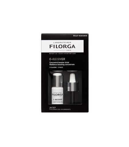 Filorga C-Recover Kur er en intensiv behandling, som forbedrer hudens glans. Denne form for C-vitamin er en ekstremt stærk antioxidant, som øger produktionen af kollagen, stimulerer cellevævet og giver huden glans. Filorga C-Recover Kur er til træt hud med mangel på glans. Tegn på træthed udslettes, huden bliver lysere og huden ser yngre ud. Dosis og Anvendelse Påføres hver morgen eller aften i 21 dage på et rengjort ansigt, hals og dekolletage med lette cirkelbevægelser. Påfør herefter din dag- eller natcreme. For at opnå den bedste effekt, bør C-Recover opbevares køligt efter åbning. ...