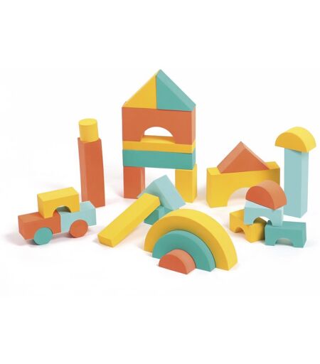Roligt byggset. Denna uppsättning består av 28 färgglada och olika skumklossar. Klossarna är ultralätta och har en mjuk konsistens som föräldrar uppskattar för lugn och säker lek. Utvecklar barns finmotorik och deras fantasi att skapa, Kom ihåg att lufta skummet 24 timmar före användning. Ålder: +10 månader Material: 100% EVA ...