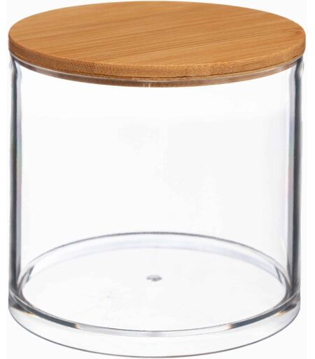 Five Opbevaring til vatrondeller med bambuslåg (3 varianter) - Transparent - 9,6cm x 9,6cm x 9,7cm - Adeline