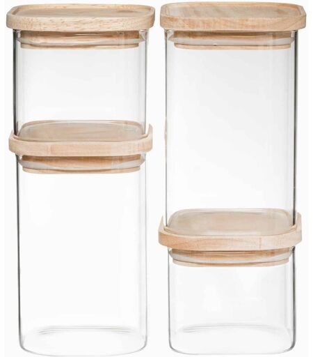 Five Opbevaringsglas med låg i heveatræ (sæt med 3 eller 4 stk.) - Transparent - 10cm x 10cm x 15cm - Flora