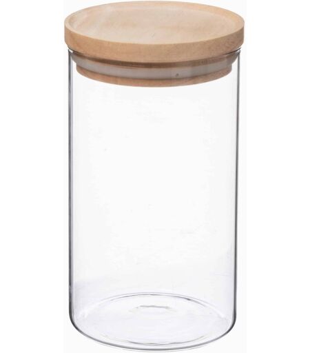 Five Opbevaringsglas med låg af heveatræ (3 størrelser) - Transparent - 10cm x 10cm x 17,3cm - Elina