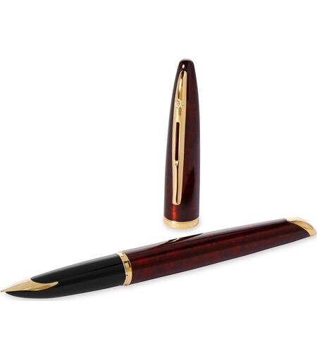 Waterman Carène Marine Amber Gold Trim I mere end 100 år har Waterman produceret skriveartikler i særklasse. På Exposition Universelle i Paris i år 1900 vandt Waterman den største hædersbevisning ”gold medal of excellence”. Pennene produceres i Frankrig og har siden starten været designet med Paris som udgangspunkt. Byens enorme kulturelle rigdom og litterære historie har siden starten været den primære inspirator i Watermans funktionalitet og design – med den parisiske tidløshed i højsædet.Carène-serien fra Waterman tager udgangspunkt i individet og ens personlige stil og smag. Designet er luksuriøst og ikonisk på samme tid. Carène er særlig kendt for sin specielle fyldepensspids som, udover at være moderne med sit sofistikerede kurvede look, er designet til at give dig en ekstraordinær komfortabel skrivefornemmelse. Waterman Marine Amber Gold Trim har et unikt design inspireret af luksusbåde. Stregerne er elegante, strømlinede og eksklusive. Pennekroppen er udført i smuk højglanspoleret design i sorte og brunt med detaljer belagt i 23 karat guld.Carène fyldepensspidsen er designet for at give dig den bedst mulige skriveoplevelse. Spidsen har et smukt og unikt udtryk og er produceret i 18 karat solidt højglanspoleret guld. Model: Waterman Carène Marine Amber Gold Trim Fountain PenType: FyldepenStregtykkelse: FineLeveres med 1 stk. Waterman blå fyldepensrefillLeveres i flot gaveæske ...