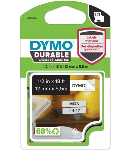 Dymo D1 - Durable - Sort på hvidt - 12mm x 5.5m, Tape