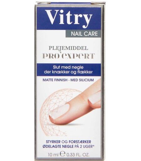 Vitry Pro Expert Plejemiddel styrker og forstærker bløde, ødelagte, flækkede og knækkede negle på 2 uger. Matte finish. Dosis og Anvendelse Påfør 1 lag hver anden dag, idet du omhyggeligt renser neglene mellem hver påføring. Kan bruges alene eller som grunder under neglelakken. ...